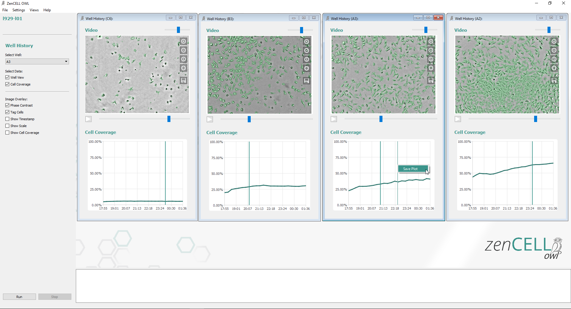Data can be analyzed time-resolved and dynamic changes and developments ofcell culture retrospectively down to cell level.